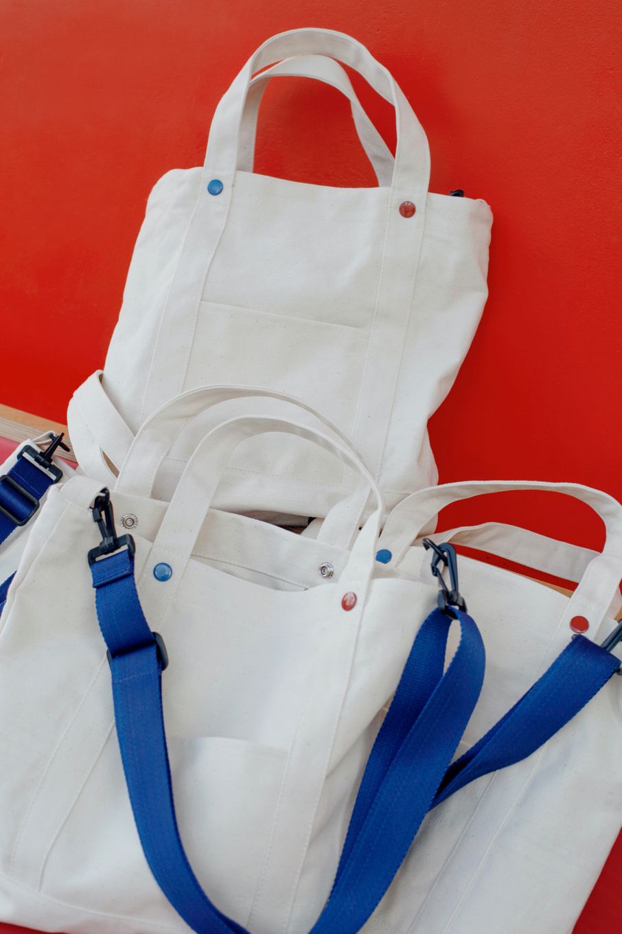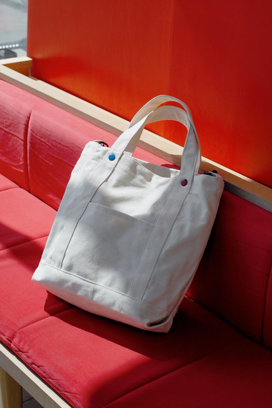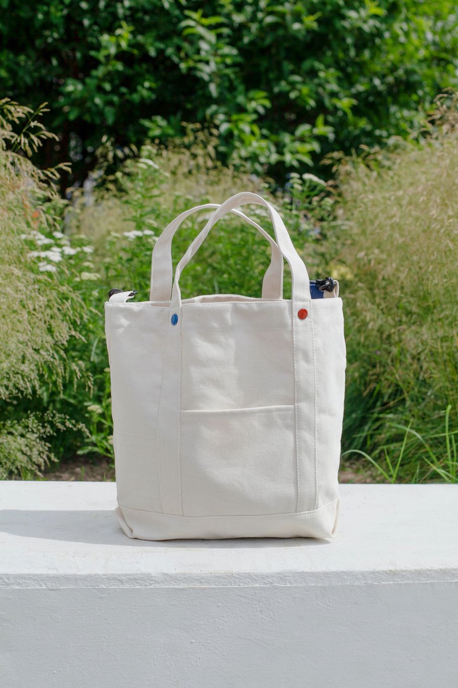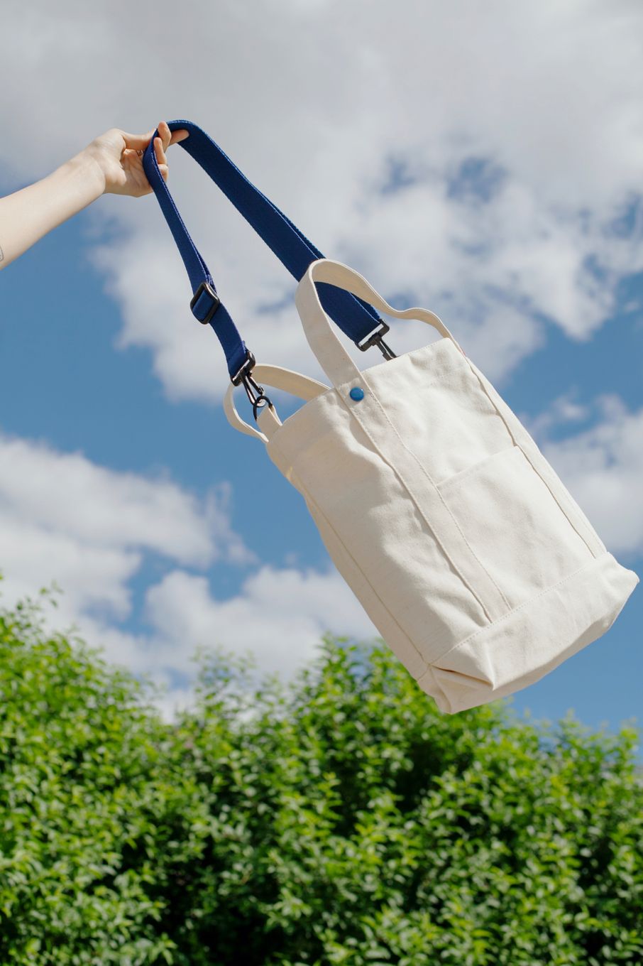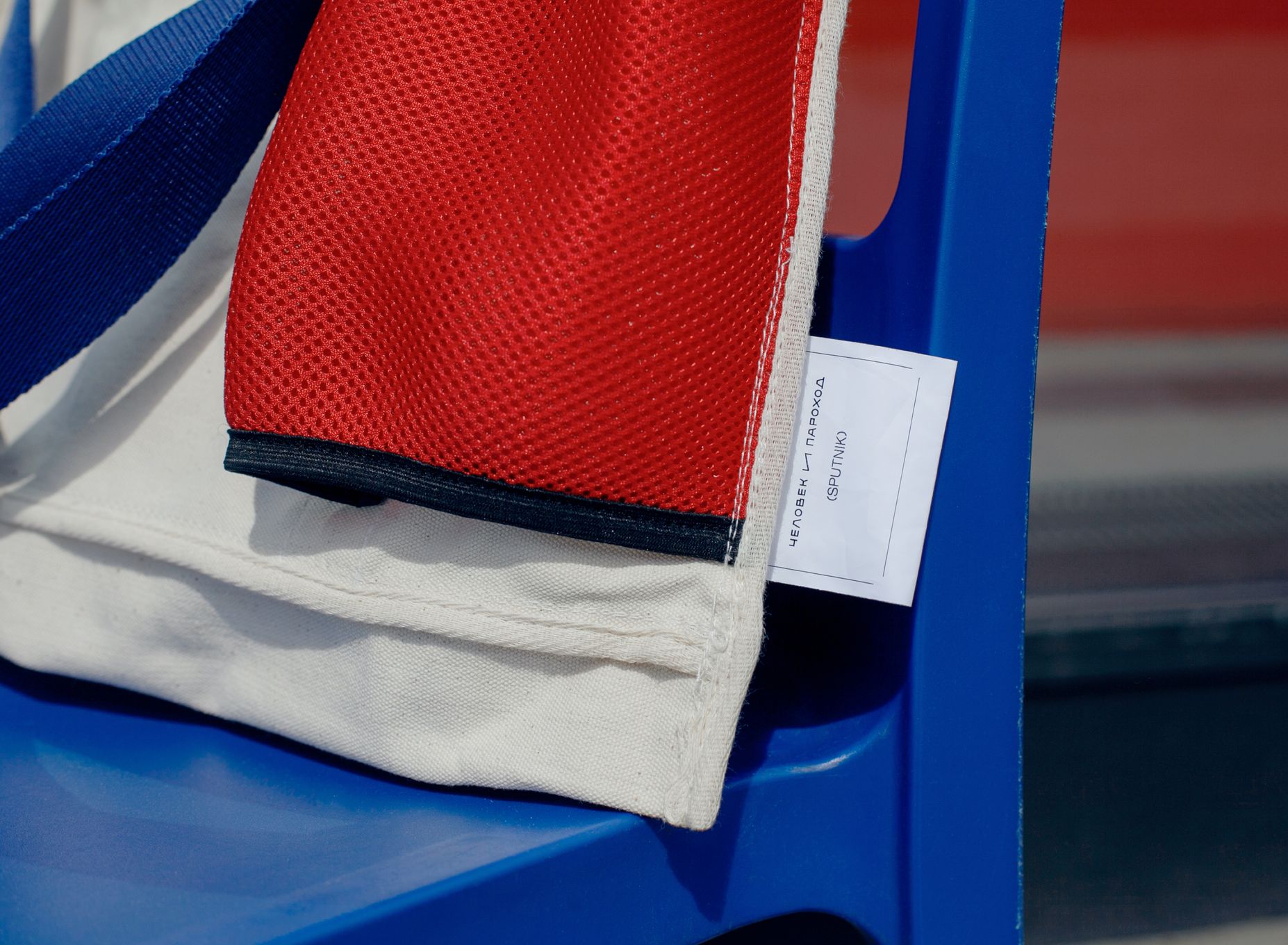 Для коллаборации с «Человек и Пароход» мы взяли нашу сумку из плотного неокрашенного канваса, ведь внутренние карманы из сетки отлично подходят для термоса с кофе, и дополнили её элементами в фирменных цветах «ЧиП». Купить её можно у них на сайте↗.